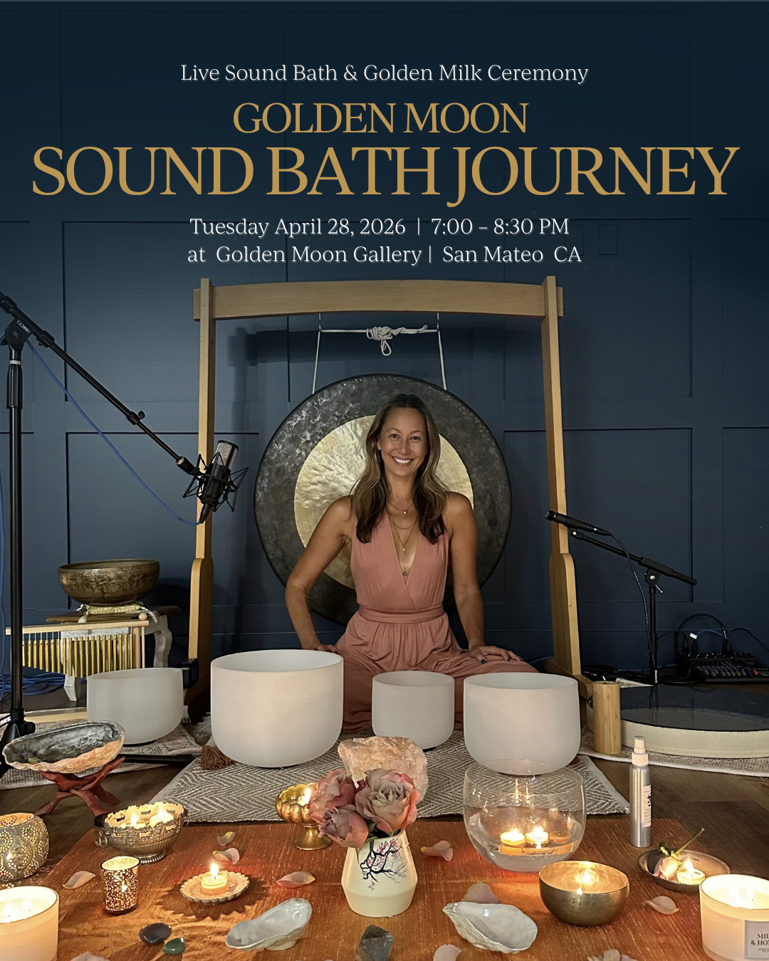 Two nights before the moon reaches full, we'll gather and open our time together with golden milk ceremony — warm turmeric, ginger, and black pepper steeped in milk (oat or dairy) and touched with maple syrup, offered as a ritual of receptivity, accompanied by ancient mantra from the Sri Sukta — one of the oldest hymns to nature's forces of prosperity, nourishment, and support.
